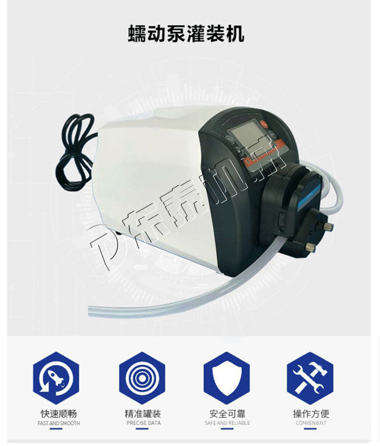 醫(yī)用小型液體灌裝機(jī)又叫小型磁力泵灌裝機(jī)可灌充絕大類型的液體,包括高粘稠度的液體。醫(yī)用小型液體灌裝機(jī)是利用位電腦對(duì)微型水泵在灌裝時(shí)間、電機(jī)轉(zhuǎn)速等因素上的控制,達(dá)到均勻的、重復(fù)誤差極小的液體灌裝方式,廣泛的應(yīng)用于藥物、化工、食品、飲料、油脂、化妝品等行業(yè),適用于低粘度、無(wú)顆粒的液體分裝、小批量生產(chǎn)。