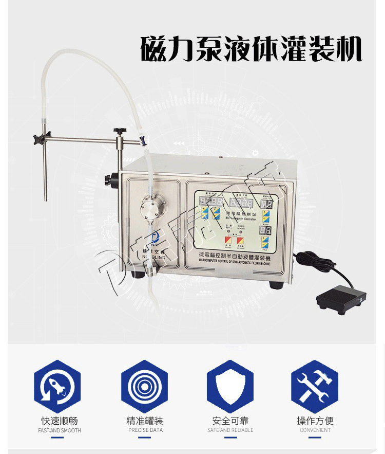 醫(yī)用小型液體灌裝機又叫小型磁力泵灌裝機可灌充絕大類型的液體,包括高粘稠度的液體。醫(yī)用小型液體灌裝機是利用位電腦對微型水泵在灌裝時間、電機轉(zhuǎn)速等因素上的控制,達到均勻的、重復誤差極小的液體灌裝方式,廣泛的應(yīng)用于藥物、化工、食品、飲料、油脂、化妝品等行業(yè),適用于低粘度、無顆粒的液體分裝、小批量生產(chǎn)。