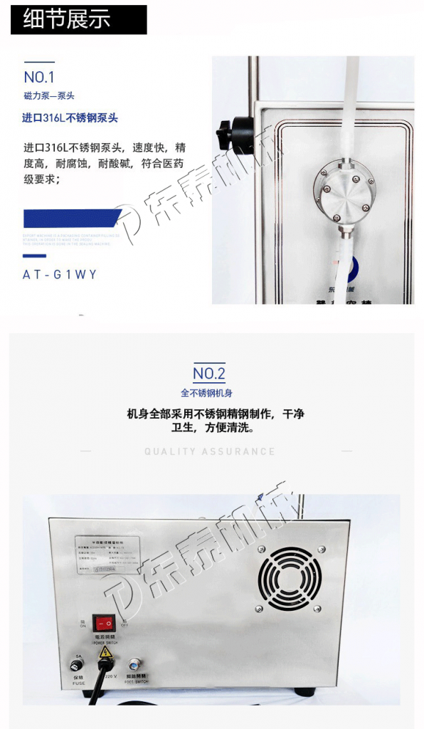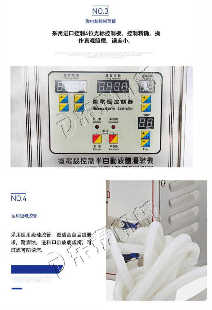 ① 本款醫(yī)用小型液體灌裝機是液體灌裝機中的一款暢銷產(chǎn)品,其采用變頻調(diào)速器,配進口高精度多圈電位器及可鎖表盤,使流量調(diào)節(jié)穩(wěn)定準確,誤差負偏小于0.5%,正偏小于1.5%。