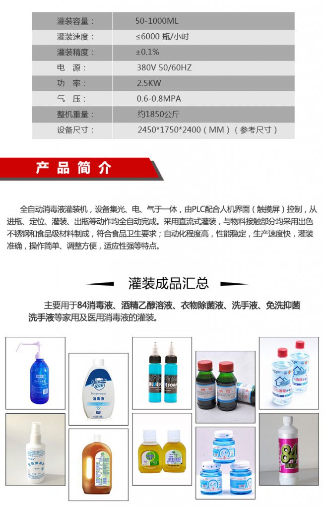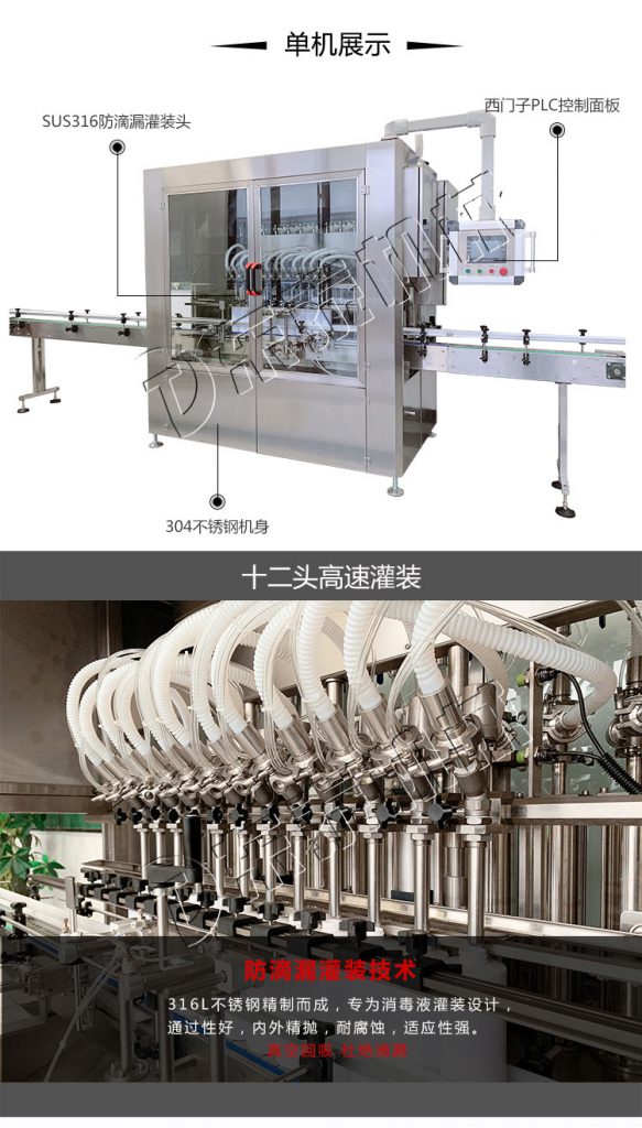 應(yīng)用領(lǐng)域:適用于食品飲料、醫(yī)藥、化工、農(nóng)藥等行業(yè)中各種流動液體的灌裝。如果消毒液、酒精、殺菌劑、溶液等。